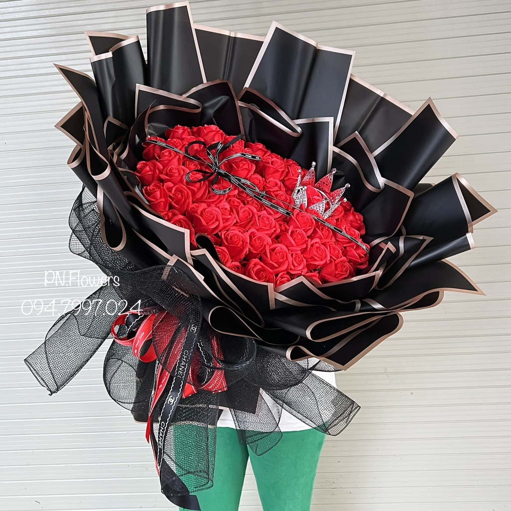 99 Bông Hoa Sáp Đỏ + Vương Miện