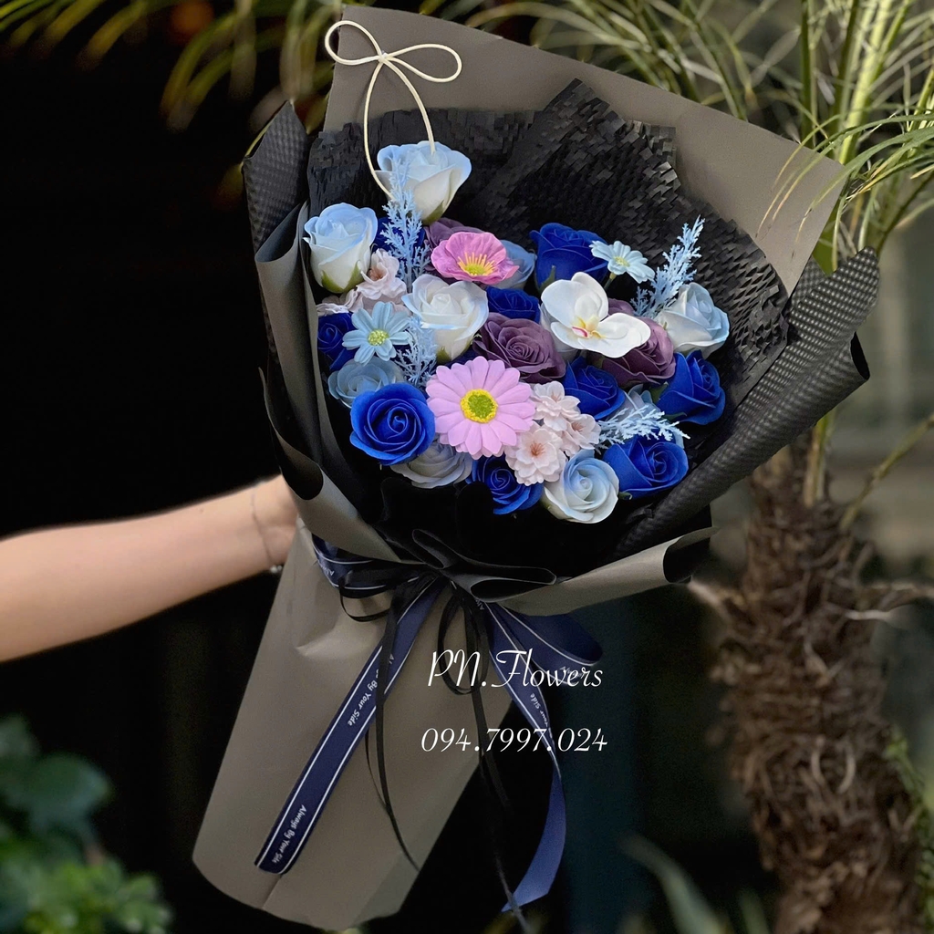 Bó Hoa Sáp 33 Bông Mix Tone Xanh Dương