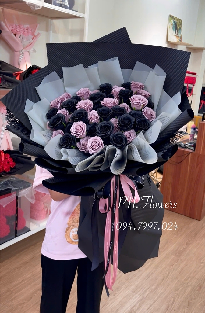 Bó Hoa Sáp 50 Bông Hồng Manta Tone Đen Hồng