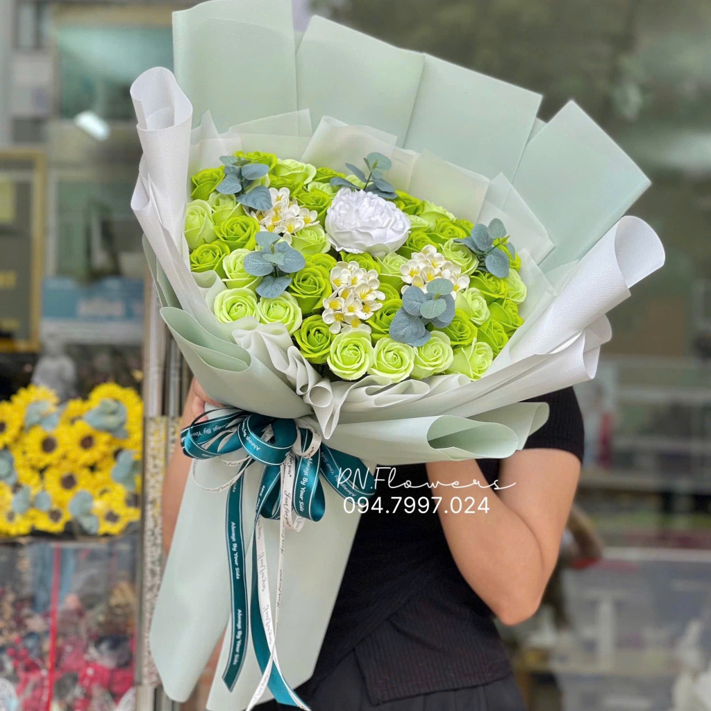 Bó Hoa Sáp 50 Bông Tone Xanh Lá Mix Mẫu Đơn