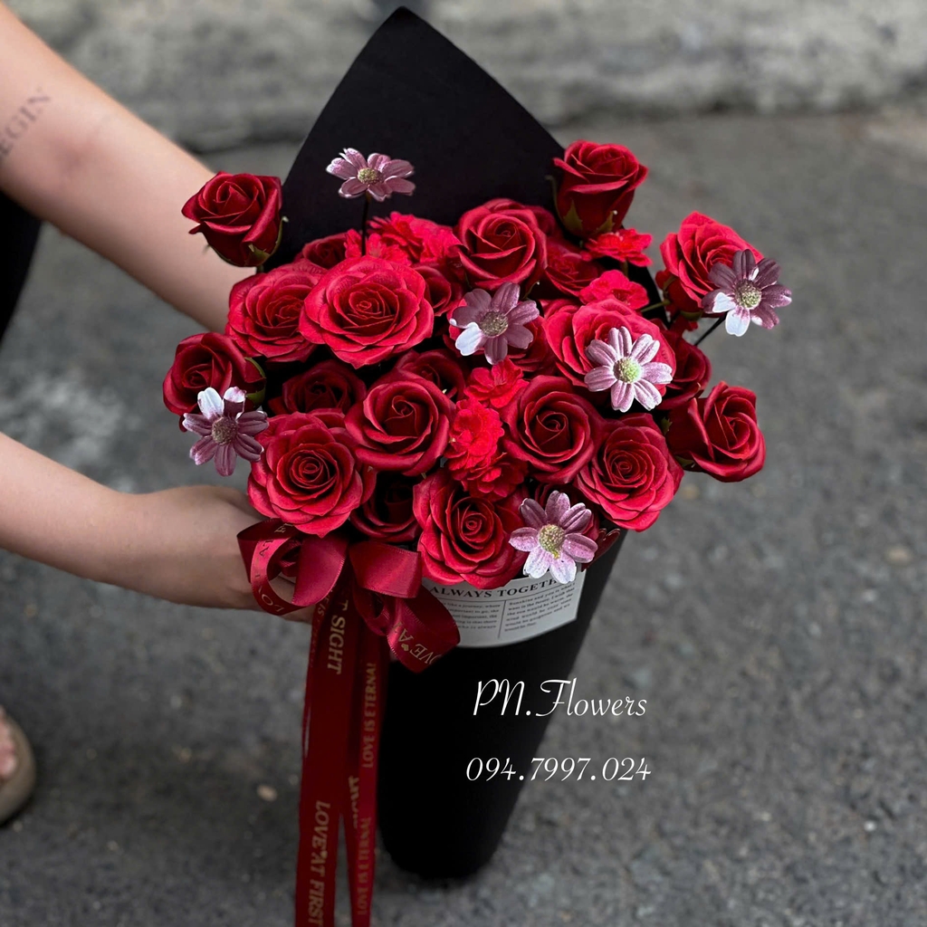 Hoa Sáp Thơm 99 Bông Đỏ Tròn Mix Giấy