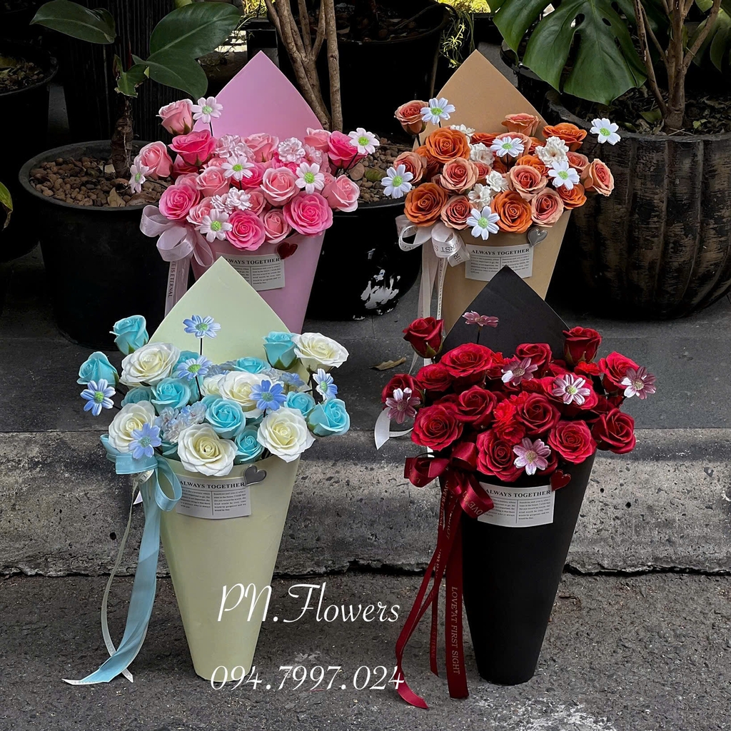 Bó Hoa Sáp Ốc Quế Tone Đỏ Đô