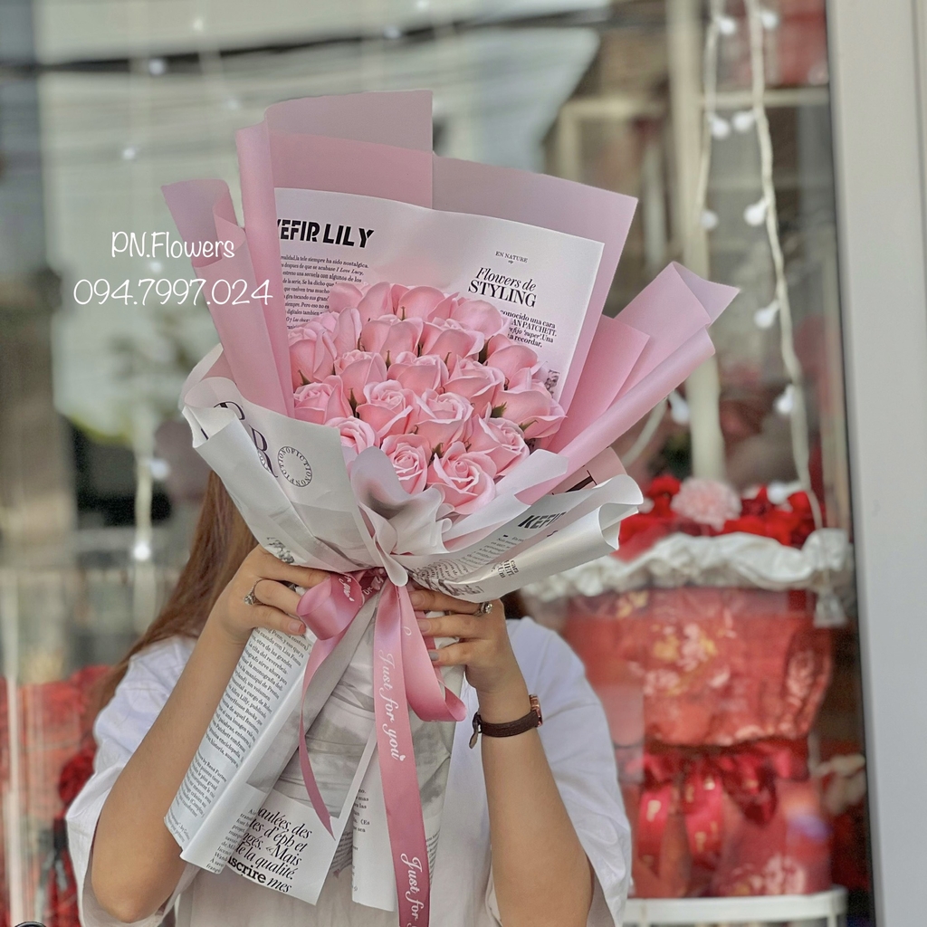 Bó Hoa Sáp 85 Bông Tone Hồng Mix Hoa Sáp Cao Cấp:
