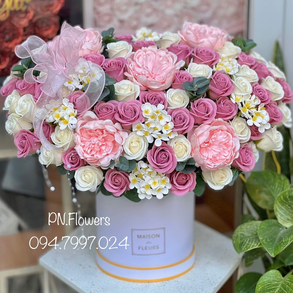 Hoa Sáp Chậu 100 Bông Tone Hồng Nude