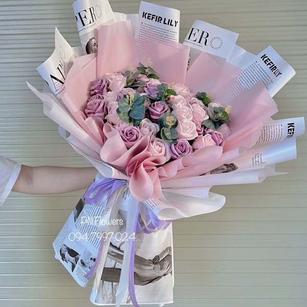 Kết hợp giữa những bông hoa sáp, phụ liệu cành lá cây bằng nhựa và giấy bọc sang trọng. Với kiểu dáng rất đa dạng, bạn sẽ khó thể nhận ra đây là một bó hoa giả vì nó mang đầy đủ vẻ đẹp, màu sắc, hương thơm của một bó hoa tươi. Hoa sáp dạng bó thích hợp tặng người yêu, bạn bè, người thân, thầy cô giáo trong các dịp như 14/2, 8/3, 20/10, 20/11 hay sinh nhật, khai trương, tân gia…