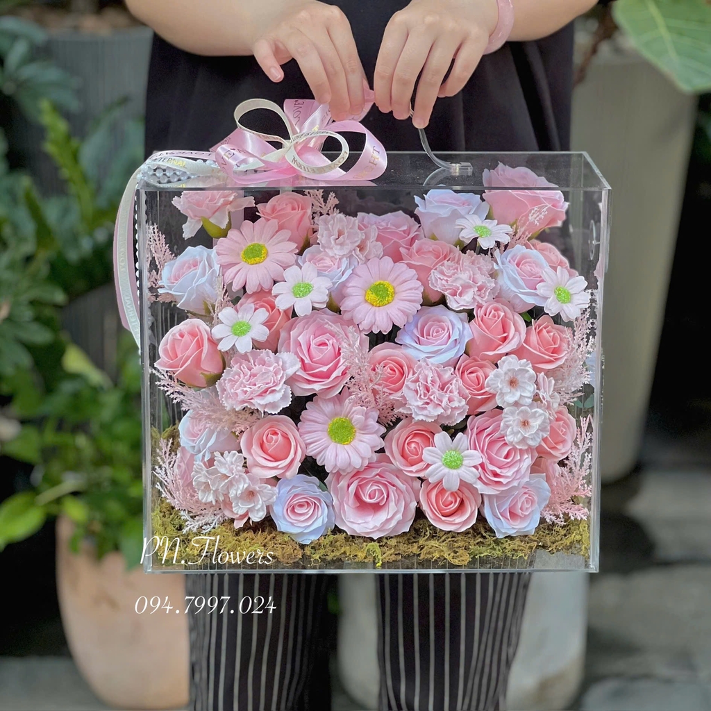 Vali Hoa Sáp Thơm mica cứng tone màu hồng cam.
